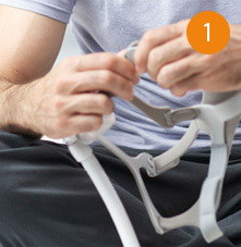 اتبع التعليمات الموجودة أدناه لضبط المقاس الذي يناسبك من قناع Wisp لعلاج انقطاع التنفس أثناء النوم . أو شاهد الفيديو التعليمي.